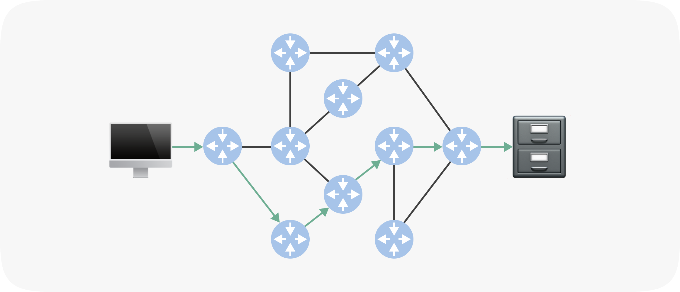 Кожен пакет даних передається мережею одержувачу. Передавання може здійснюватися різними маршрутами через різні проміжкові вузли (поштові відділення).